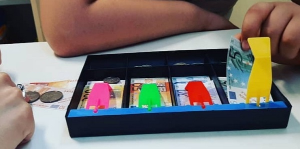 Abilità allenate: riconoscere visivamente banconote e monete, conoscerne il valore, imparare a gestire il denaro negli acquisti, effettuare ragionamenti logico-matematici