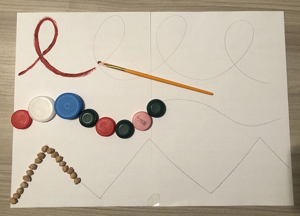 Abilità allenate: apprendimento della forma delle lettere, motricità fine, integrazione bi-manuale