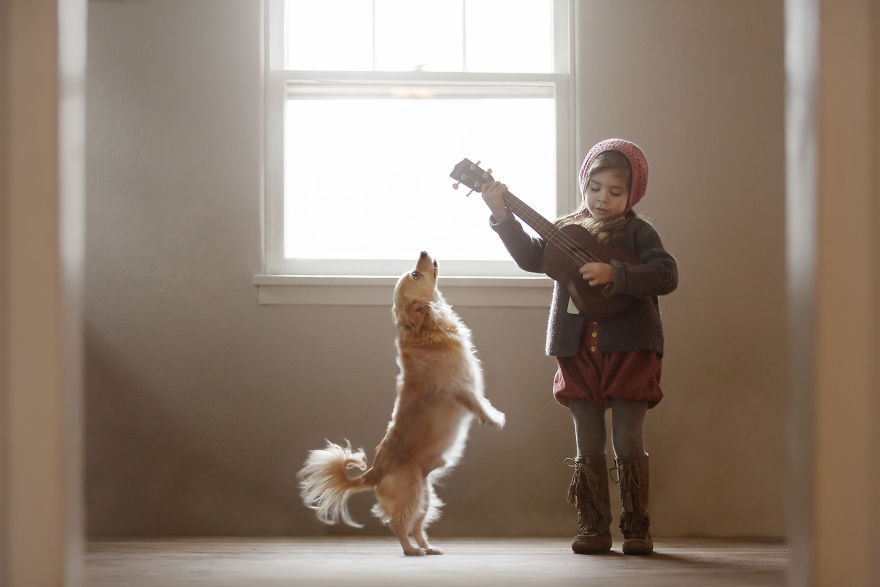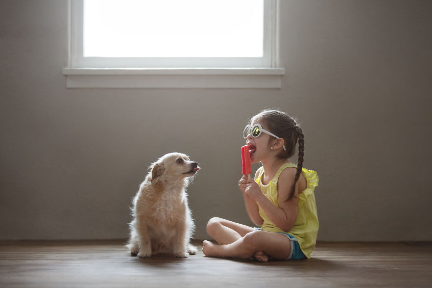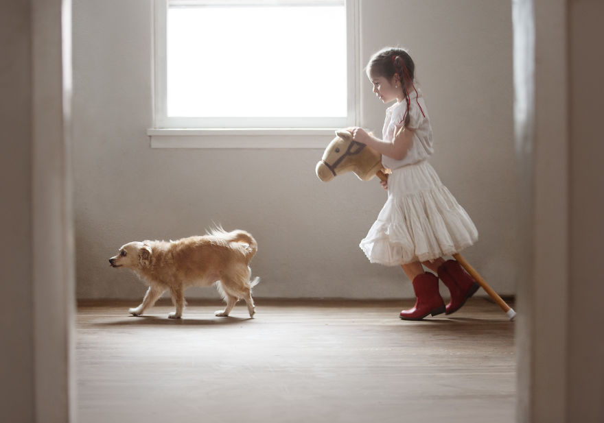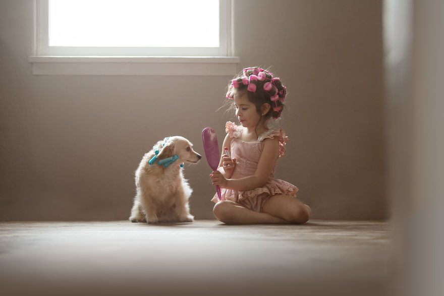 Mamma Robin racconta come è nata questa gallery “La Storia di Raven e Jack” : stava facendo delle foto in posa alla figlia Raven, ma il cagnolino continuava a intrufolarsi sul set perché voleva stare vicino alla bambina. Così quello che all’inizio era causa di frustrazione nella mamma, è diventato un bellissimo momento di tenerezza.