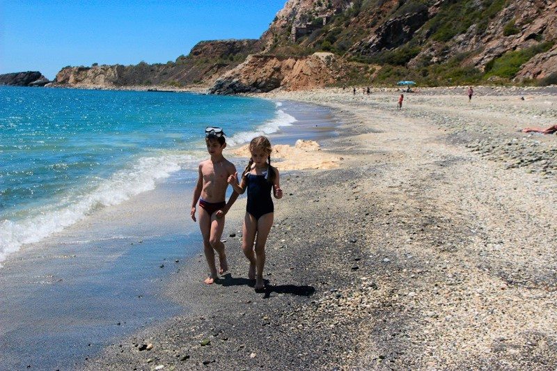 Già dal sentiero scosceso ci rendiamo conto della bellezza silenziosa e luccicante del tratto di spiaggia. Come non perdersi ore e ore a ricercare il proprio minerale preferito abbandonandosi di tanto in tanto a qualche tuffo nelle acque cristalline? Solo i morsi della fame hanno convinto i bambini a lasciare quest’oasi naturale di pace e colore: un luogo magico che consigliamo a quanti amano le avventure nei luoghi un po’ speciali, magari non comodissimi, ma impagabili nell’esperienza che regalano!