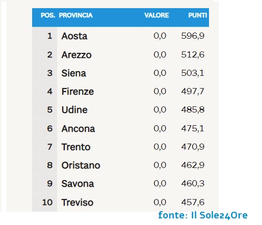 La classifica delle provincie italiane