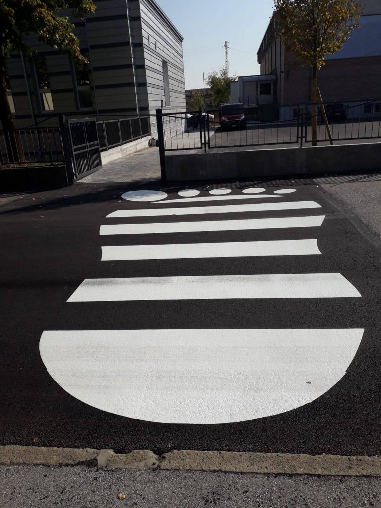 Anche i bambini della scuola primaria di Vicenza hanno le loro strisce pedonali su misura : una simpaticissima zebra disegnata sull’asfalto grazie al progetto fortemente voluto dall’architetto Paolo Stella, conosciuto anche come l’Architetto Giocoso.