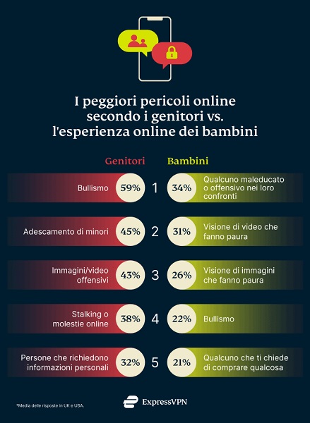 Il sondaggio condotto da ExpressVPN ha scoperto che per il 59% dei genitori intervistati la principale preoccupazione inerente all’uso dei social media da parte dei figli riguarda il cyberbullismo.