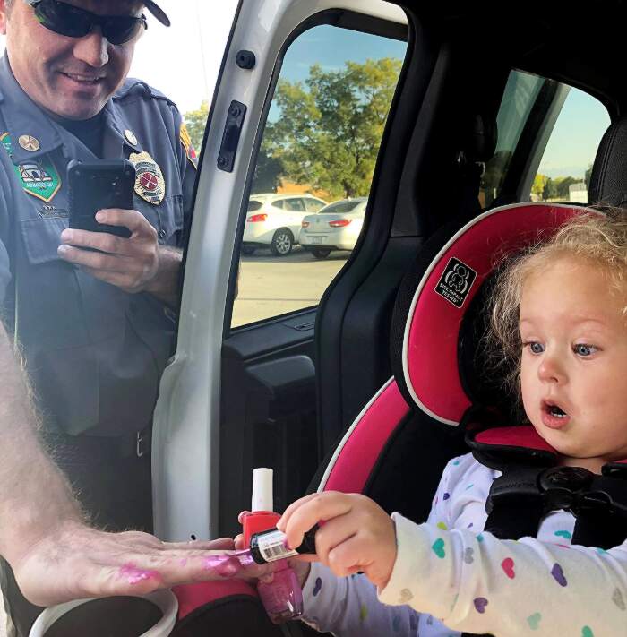 Stavano andando dalla nonna materna e la piccola aveva portato con sé una trousse piena di smalti per l’occasione. Questo è quanto hanno visto i vigili del fuoco, Allen Hadley e Kevin Lloyd della caserma dei pompieri del distretto di North Davis.