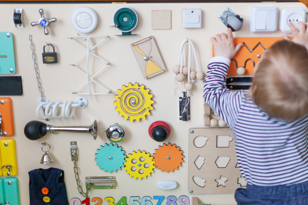 La busy board, chiamato anche pannello sensoriale, è l’ultima e geniale invenzione delle mamme green per intrattenere, senza pericoli, i più piccoli e farli divertire con gli oggetti di uso quotidiano. Gli oggetti, infatti, vengono saldamente ancorati a un pannello di compensato, a sua volta fissato in maniera stabile a un muro.