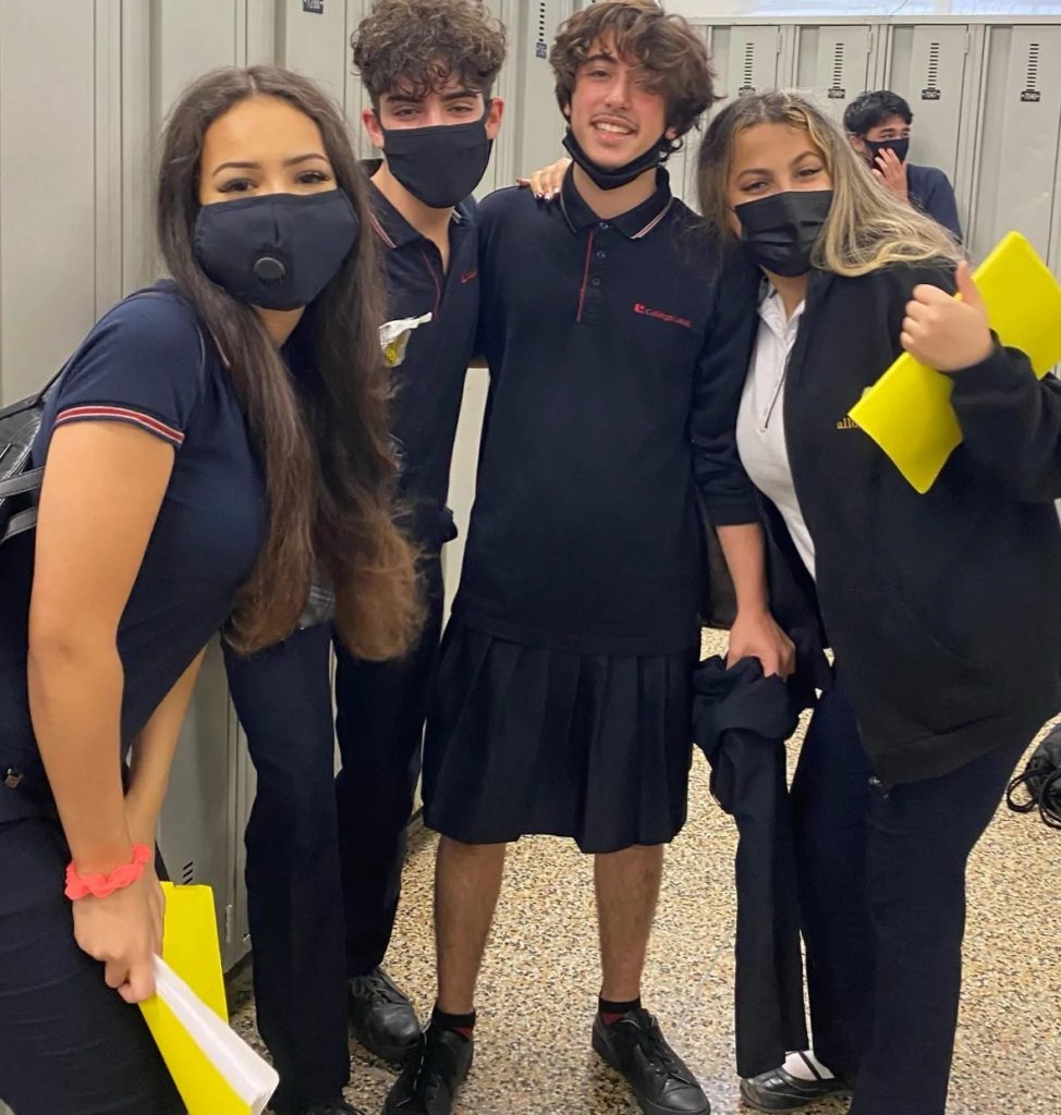 Almeno fino ad oggi, quando gli studenti hanno pensato di iniziare una rivoluzione a favore della libertà di espressione, anche solo tramite i vestiti. Si sono quindi fotografati con la gonna, presto imitati dagli altri studenti maschi, e in pochi giorni il loro post è diventato virale.