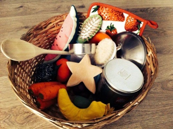 porre il cestino di fronte al bambino e lasciare che lo esplori liberamente
