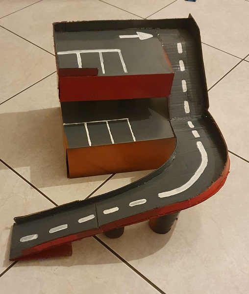 Materiali: due scatole, cartone per la discesa, rotolo dello scottex