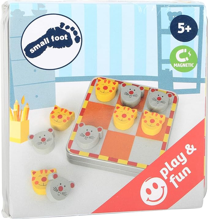È il classico gioco del tris solo che anzichè cerchi e crocette si usano gatti e topi. L’ideale da portare in borsa!