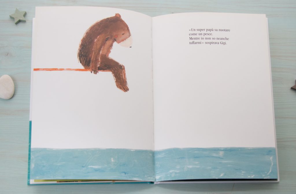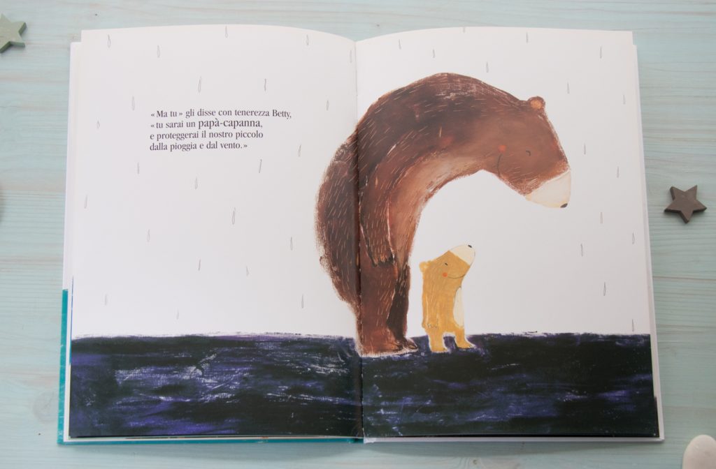 Orso Gigi sta per diventare papà, ma ha paura di non essere all’altezza e così la futura mamma Betty lo rassicura. Anche se non sei capace di giocare a calcio o di costruire una casetta di legno per tuo figlio, sarai un bravissimo papà perché “sarai un papà capanna che lo proteggerà dalla pioggia e dal vento, sarai un papà cavallo e guiderai il nostro piccolo all’avventura, sarai un papà isola dove il nostro piccolo potrà riposare”.