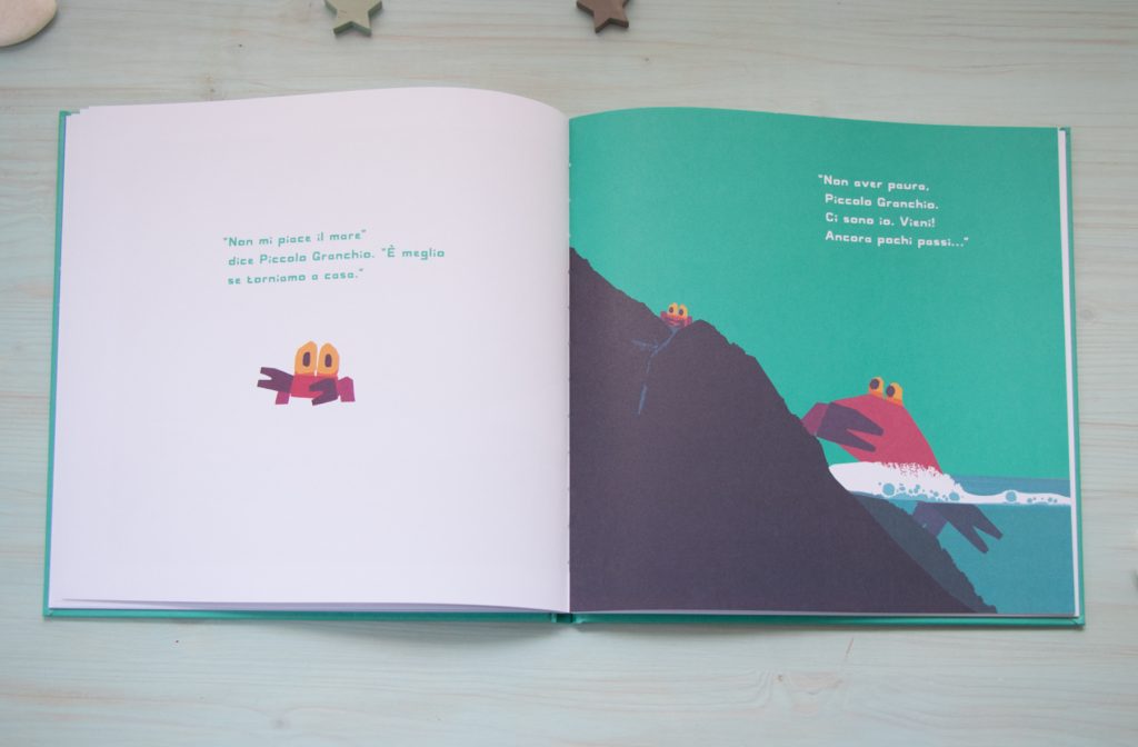Piccolo Granchio e Grande Granchio vivono in una piccola pozza, ma è ora di andare a scoprire il mare… Non avere paura, piccolo granchio racconta con una storia semplice di come le paure dei piccoli possono essere superate con l’aiuto di un papà paziente e fiducioso. A volte basta tuffarsi, e poi ciò che più ci spaventa diventa una splendida opportunità.