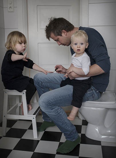 Il fotografo Jhoan Bävman, per incoraggiare sia uomini che donne a condividere il tempo del congedo parentale in modo equo, ha avviato il progetto fotografico Swedish Dads.