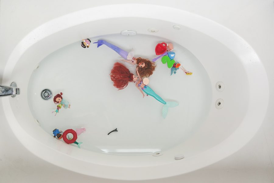 E così, navigando fra queste bellissime fotografie, potremo riconoscere un angolo della nostra cucina dove, fra taglieri e robot, ci sono una famiglia di dinosauri in esplorazione; accanto alla algida e fredda vasca da bagno quattro scarabocchi sul muro e un peluche dimenticato ci ricordano il nostro bagno dopo il passaggio dei nostri piccoli.
