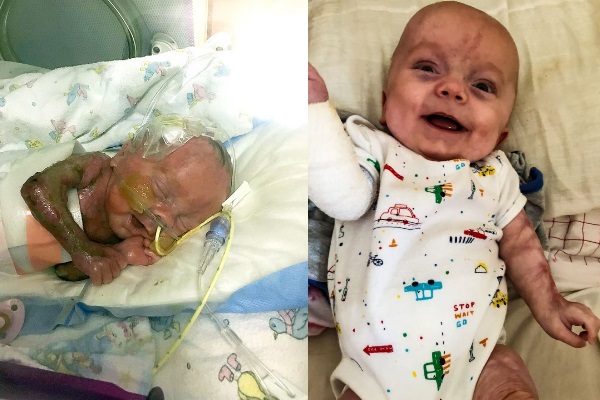 I medici hanno da subito avvertito i genitori delle pochissime probabilità di sopravvivenza di Kaiden, ma i due ragazzi si sono mostrati pronti a tutto per la salute e la vita del loro primo figlio. Con grande sofferenza ma una forte speranza hanno trascorso i primi tempi mantenendosi a distanza dal figlio, senza poterlo toccare, e hanno dovuto aspettare sei settimane perché la pelle di Kaiden iniziasse finalmente a crescere.