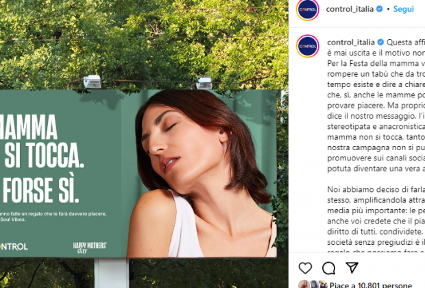 Il testo del messaggio pubblicitario è molto chiaro, è descrive bene l’immagine anacronistica e stereotipata che si ha in Italia della sessualità delle mamme, e proprio per questo la campagna pubblicitaria non è stata autorizzata né come affissioni né come campagna sui social. Per questo motivo Control Italia ha deciso di lanciare post sui social, invitando nello stesso tempo tutti alla massima condivisione in modo da far passare il messaggio, dando così vita ad una società senza alcun pregiudizio verso una sessualità sana e positiva.