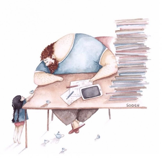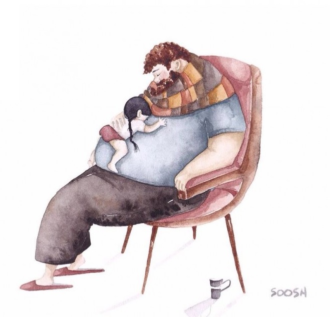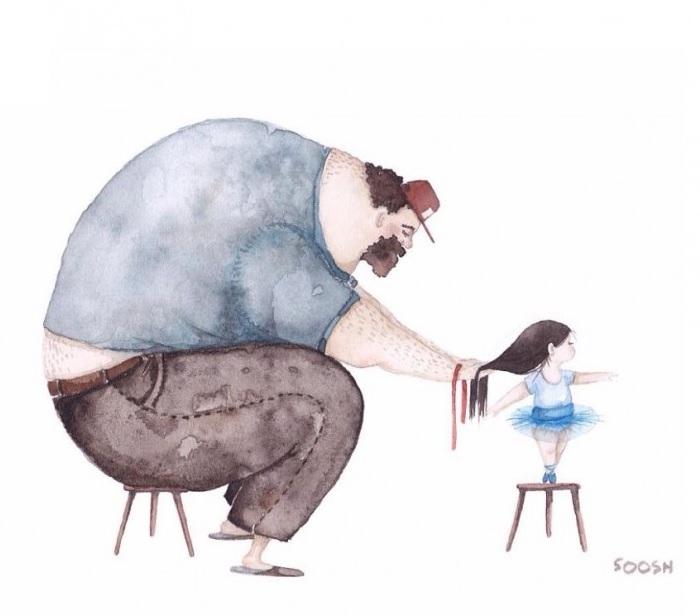 Snezhana Soosh, meglio conosciuta semplicemente come Soosh, è un’illustratrice ucraina che ha mostrato in alcune semplici e delicate vignette la bellissima relazione papà-figlia.