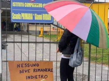 È durata poco più di mezzora la pacifica protesta a cui lunedì hanno preso parte i giovani studenti dell’istituto elementare Rodari di None, in provincia di Torino. Gli scolari, muniti di cartelli contenenti mirati messaggi, hanno sostato, rigorosamente rispettando il distanziamento sociale, di fronte alla loro scuola. Motivo del sit in improvvisato era quello di mostrare la propria vicinanza e solidarietà al compagno rimasto senza il proprio insegnante di sostegno.