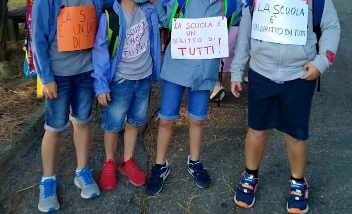 Alla scuola elementare Rodari infatti la solidarietà degli scolari per un loro compagno di classe rimasto senza insegnante di sostegno è sfociata in una pacifica protesta davanti all’istituto. I piccoli manifestanti sono rimasti circa trenta minuti davanti alla scuola con cartelli scritti a mano direttamente da loro, e rigorosamente alla distanza prevista di un metro. Purtroppo si tratta dell’ennesimo caso di protesta pubblica dopo quelli registrati nei giorni scorsi anche a Perugia e Varese, che coinvolgono bambini che rimangono senza il necessario sostegno.