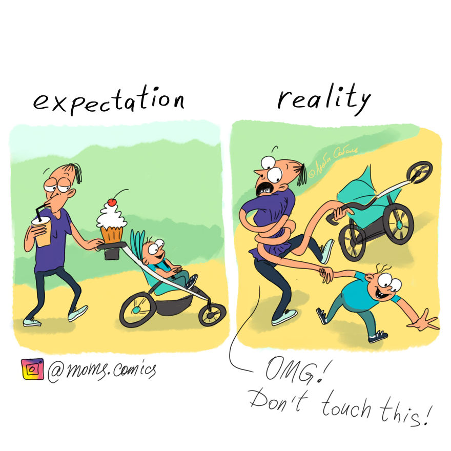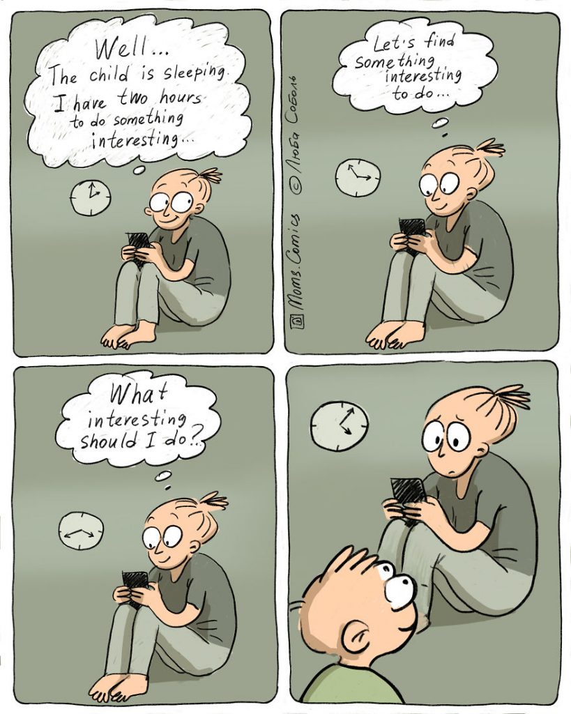 Luba Sobol è una mamma e disegnatrice russa che illustra adorabilmente bene l’essere mamma : tutte le aspettative che avevamo sul crescere i nostri pargoli (chiamiamole pure illusioni), le coccole, le nanne sono svanite nel nulla. Eppure Luba è una mamma davvero felice, perché anche se non si aspettava il duro lavoro dell’essere mamma, ha potuto scoprire il lato più comico e divertente, disegnando ogni situazione per poter uscire dalla sua routine con un sorriso.