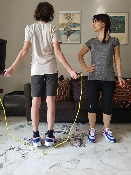 Quello che io e il quindicenne facciamo, sono dei semplici workout aerobici, sempre a corpo libero o aiutati da piccoli attrezzi come ad esempio una corda per saltare. Per chi non sapesse cosa è un allenamento aerobico, si tratta dell’esecuzione di una serie di esercizi protratti per un certo periodo di tempo, in modo da consentire all’organismo di utilizzare come fonte di energia, non più solo il glucosio, ma anche grassi e lipidi.