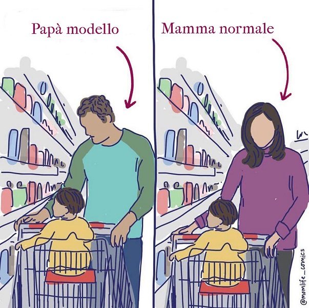 Papà porta il bambino dal pediatra, va a riprenderlo all’asilo o addirittura lo porta con sé a fare la spesa? Wow, che padre in gamba! E se lo fa la mamma: ovvio, è il suo lavoro.