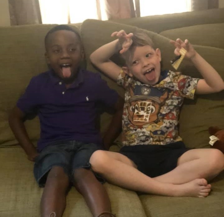 Christian e Connor ridono insieme e fanno le smorfie spensierati.