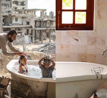 Il fotografo turco Mehmet Aslan, autore dello scatto, è riuscito a catturare una delle espressioni più tenere che possano esserci tra un padre e suo figlio. Il piccolo viene sollevato in alto, sicuro dell’amore del padre, nonostante la vita sia stata ingiusta nei loro confronti.