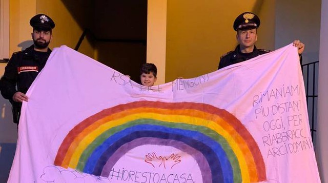 Un bambino di Prato ha voluto però fare qualcosa di più: oltre ad appendere il cartellone fuori dalla sua finestra, ne ha realizzato uno per gli anziani ospiti di una Rsa a Vaiano, dove lavora sua sorella, per cercare di rallegrare anche le loro giornate con un pensiero positivo. Per recapitare il cartellone colorato alla struttura, il bimbo ha chiamato il 112 e i carabinieri hanno esaurito il suo desiderio: hanno prelevato lo striscione e lo hanno portato a destinazione.
