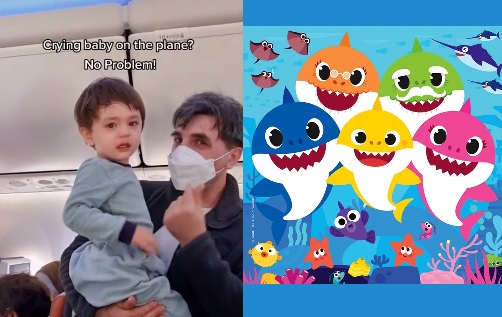 I passeggeri di un aereo cantano Baby Shark per calmare un bambino