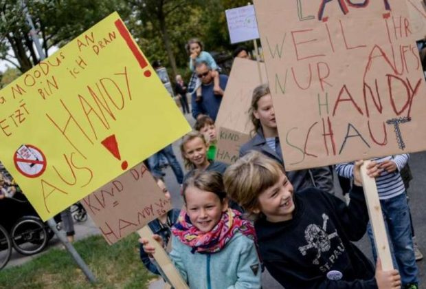 Ad Amburgo bambini protestano in piazza contro l’uso eccessivo degli smartphone da parte degli adulti