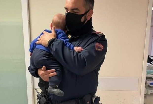 Bologna: l’immagine del poliziotto che si prende cura del bimbo di una donna maltrattata diventa virale
