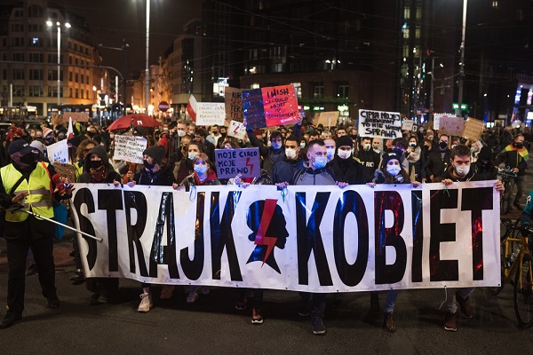 Le manifestazioni sono iniziate appunto nel 2020, dopo la sentenza della Corte Costituzionale polacca sul diritto all’aborto e sulla sua inapplicabilità anche in caso di malformazioni gravi. Migliaia di persone hanno partecipato allo sciopero di mobilitazione nazionale, lo Strajk Kobiet, lo sciopero generale delle donne, simboleggiato dal fulmine rosso e che è stato appoggiato da una gran parte della popolazione.