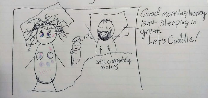 Spesso al risveglio molti uomini non si rendono conto di come sia difficile per una donna accudire il bebè di notte e di quante sollecitazioni subiscano i propri capezzoli durante l’allattamento: per questo motivo Mattea Goff, una giovane madre statunitense, ha pensato bene di ricorrere a un fumetto, disegnato in chiave volutamente satirica, per spiegare al compagno e a tutti i papà del mondo come mai le neomamme siano così stanche al risveglio.